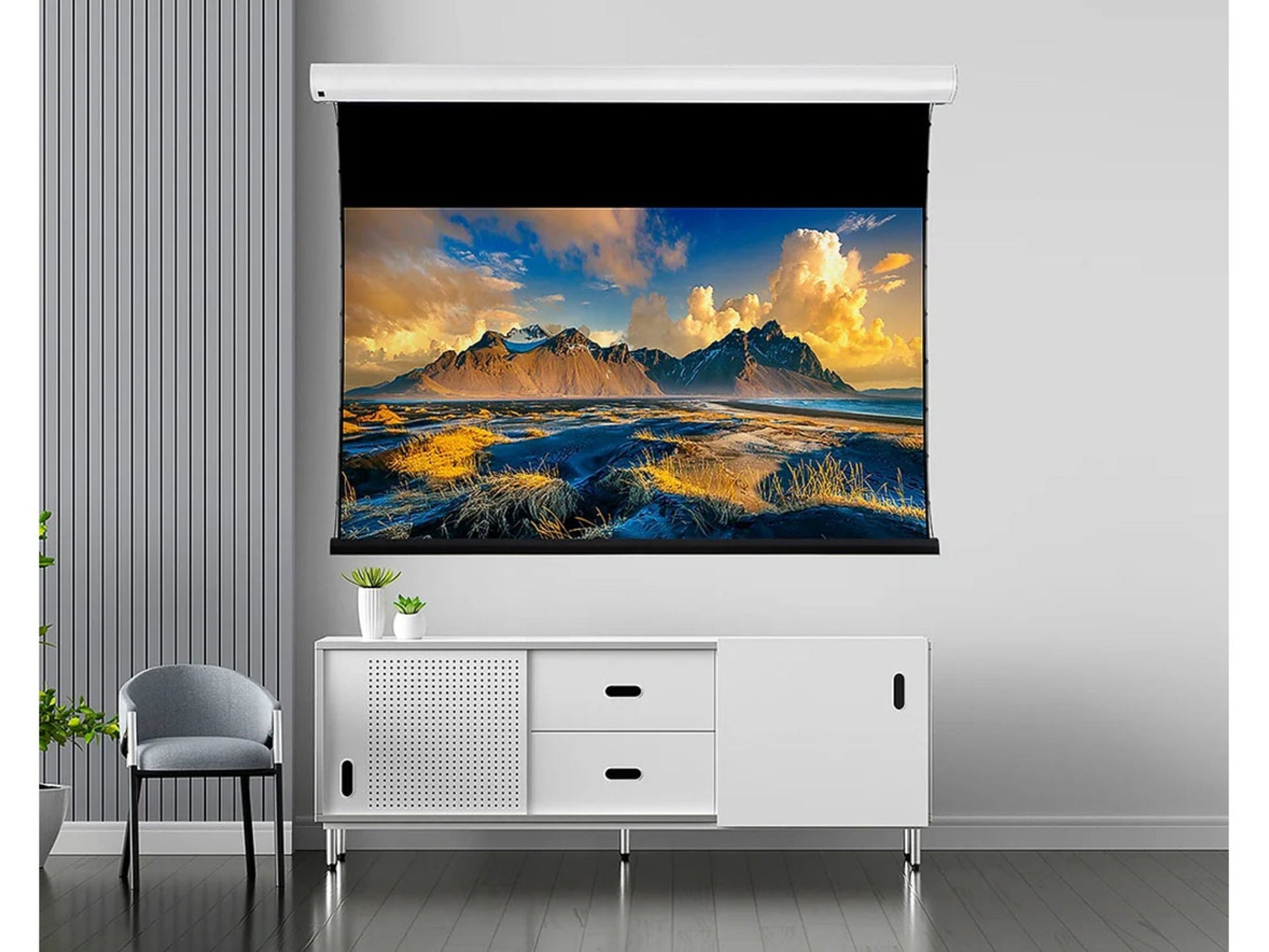 Spécialement conçu pour afficher l’image d’un vidéoprojecteur à focale ultra courte, l’écran Lumene Coliseum Extra Bright 240 C (221 x 125 cm) est équipé d’une surface projection ALR ultra lumineuse et d’un gain exceptionnel de 0,4. Il se démarque également par une directivité de 160° et dos occultant assurant une intégration flexible dans toutes les pièces. Pouvant être fixé au mur ou au plafond, il se déploie manuellement ou à l’aide d’un moteur Silent Motor contrôlé par infrarouge. Grâce à un système de clips et de crochets, l’installation de son carter est un jeu d’enfant. L’écran de projection idéal pour profiter des performances d’un vidéoprojecteur haut de gamme dans une pièce totalement éclairée !